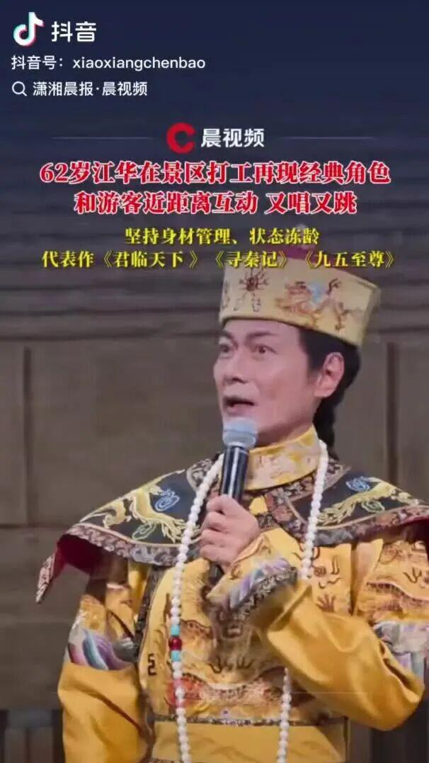 据了解,目前已有多名艺人在景区再就业,在《情深深雨蒙蒙》中饰演“黑豹子”的70岁寇振海,再次现身“大上海”舞厅又唱又跳;56岁的翁虹,身着红裙再现猫妖形象;63岁的马景涛,大热天穿着厚厚的戏服,中暑晕倒后接着奏乐接着舞;79岁的罗家英用标志性的光头造型和袈裟装扮重现了《大话西游》经典角色;而作为目前最活跃的“景区艺人”,郑国霖这几个月过足了“帝王瘾”,玩得比游客还开心。